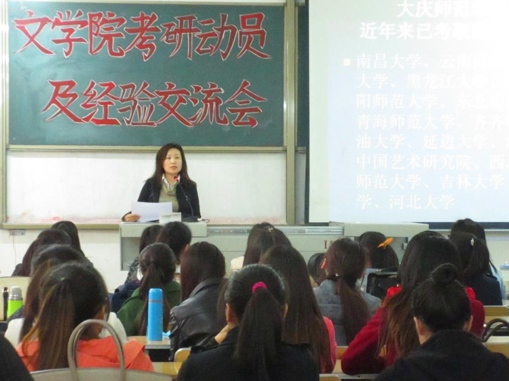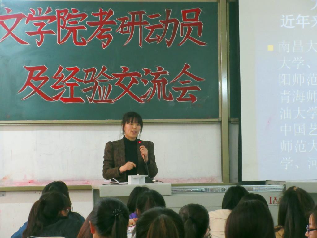 会上,今年会官方网站副院长徐晶老师、李冬梅老师、张大海老师分别对汉语国际教育专业和汉语言文学专业近年来的考研趋势进行了分析,并介绍了如何选择学校、如何备考等相关考研事宜。随后,在考研中脱颖而出的2011级学生裴广萱、冯雯、金迪、柏光亮同学也与大家分享了他们考研的心路历程。他们对同学们提出了以下几点建议:首先,希望同学们能坚定考研的意愿与信心;其次,希望同学们能认真学好专业课知识,夯实基础。第三,希望同学们能以良好的心态,克服在考研之路上所遇到的困难,不焦不躁,积极备考。