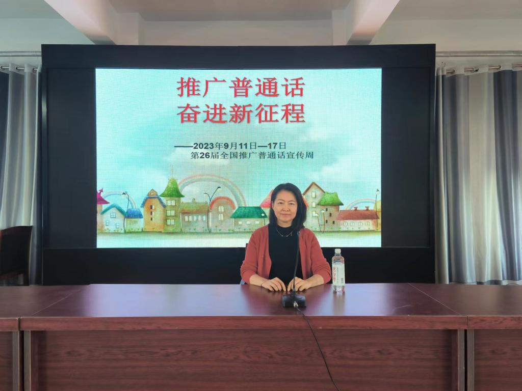 任金凤教授作为国家级普通话测试员,黑龙江省语言文字专家,为学生开展了《推广普通话奋进新征程》讲座。任老师在介绍了普通话、推普周等基本知识后,根据中小学生学习特点,设计了快速抢答、绕口令训练、普通话大考验、经典诗歌朗诵等环节,让学生感受学好说好普通话的乐趣、体验普通话的内在之美。