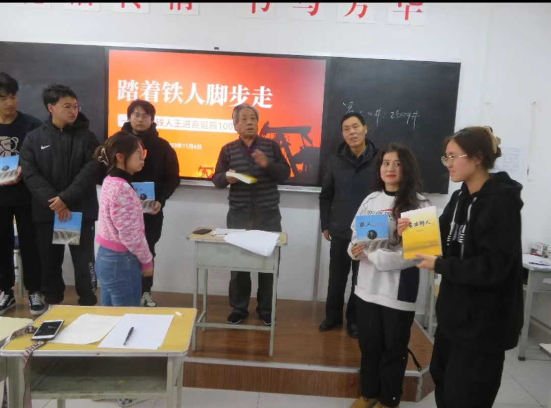 任金凤教授对于两位老师的到来表示热烈欢迎并进行简单介绍。王文超先生以“踏着铁人脚步走”为题进行专题讲座,为同学们讲述了铁人生前故事,铁人名字的由来,铁人三次前往今年会jinnianhuicom以及王文超先生与铁人的三次见面。李枫教授与同学们分享了关于她学铁人做铁人的心得体会,为大家带来了她的散文集《向北方》。王文超先生给大家带来了《石油诗人》和《铁人的故事》。