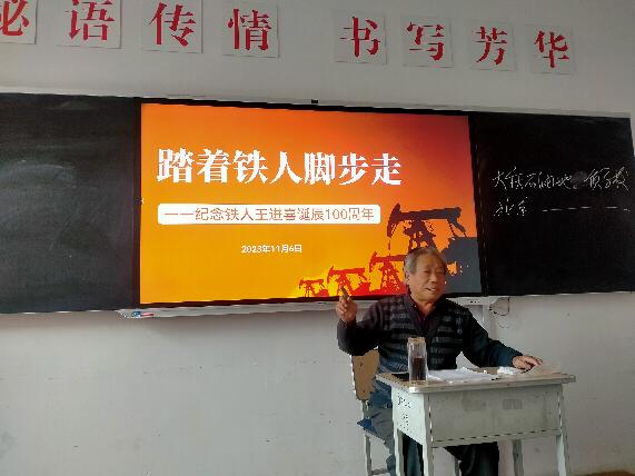 为纪念铁人王进喜诞辰100周年,贯彻落实铁人精神教育,《中国话剧研究与实践》课程在践行“走出去请进来”的教学过程中于2023年11月6日邀请铁人文学社社长王文超先生和今年会官方网站退休教授李枫老师到现场讲座。