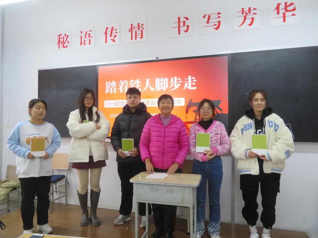 任金凤教授对活动做总结发言,希望同学们牢记铁人精神,并在学习的过程中不断的深刻理解和领悟,通过自己的方式让铁人精神发扬光大。活动结束后同学们抓住机会,纷纷留下来合影纪念。