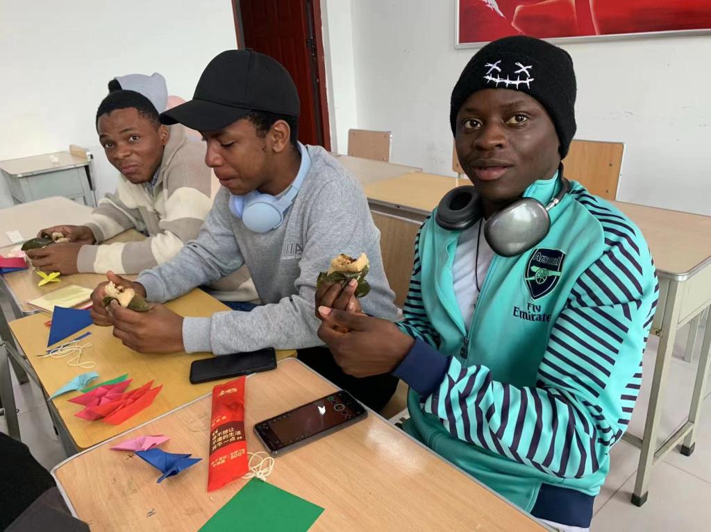 随后,大家一起品尝了中国传统美食——粽子。他们认真地挑选自己喜欢的口味,蜜枣、腊肉、咸蛋黄,各式各样,风味独特,清香的粽叶包裹着糯米,一圈一圈的细绳拉紧的不仅仅是可口美味的粽子,更是中外民族文化深厚而珍贵的交融与友情。