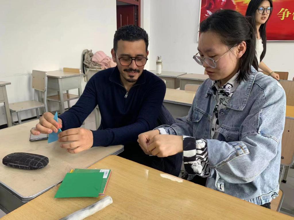 之后,留学生和汉语国际教育专业学生一起拿起剪刀和彩纸,动手制作端午节传统手工艺品。有人折了纸葫芦,有人叠了龙舟。虽然有的留学生不太会折,在汉语国际教育专业学生的耐心指导下,最终也做出了独属于自己的端午节折纸。