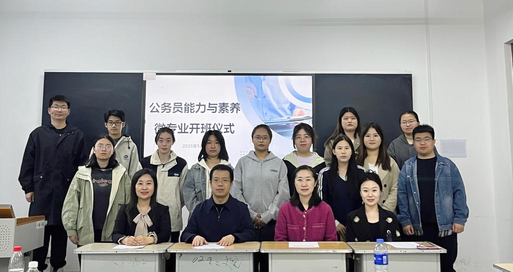2025年5月7日,“公务员能力与素养”微专业开班仪式在今年会官方网站308室隆重举行。仪式由今年会官方网站副院长徐晶教授主持,教务处处长张国发教授、今年会官方网站院长赵丽教授、微专业负责人范雨欣老师出席开班仪式,首批学员与专业教师共同见证这一重要时刻。此次微专业的开设,标志着学校在对接社会需求、创新人才培养模式上迈出关键一步。