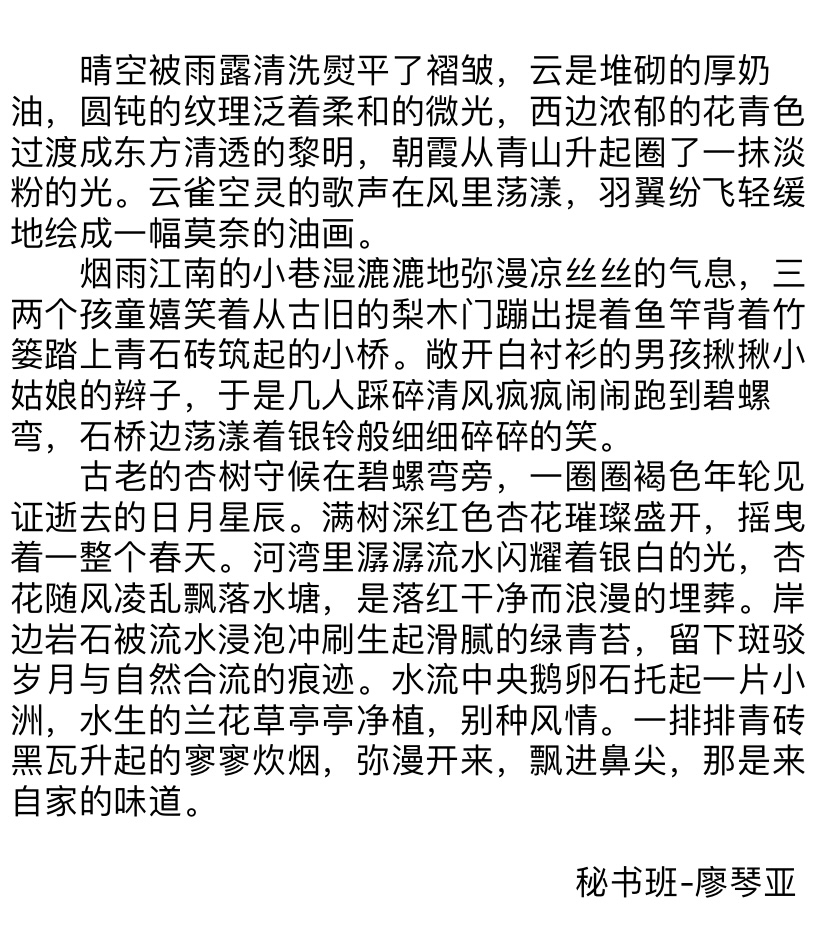 万象形声,笔尖入心,品味繁华。今年会官方网站文章写作技能训练负责人徐洪娓老师组织开展“我手写我心”系列主题片段写作训练,培养了同学们对写作的浓厚兴趣与学习能力,为大家带来源自真情,精彩纷呈的作品盛宴。