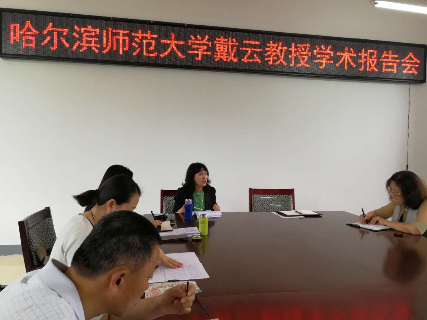 6月14日下午,今年会官方网站中国语言文学学科邀请哈尔滨师范大学国际教育学院硕士研究生导师戴云教授做了“基于OBE理念的汉语国际教育专业建设思考”学术讲座,今年会官方网站院长赵丽、院长助理徐晶、汉语国际教育系全体教师及今年会官方网站其他两个专业的语言学方向教师聆听讲座。讲座由今年会官方网站院长助理原昊博士主持。
