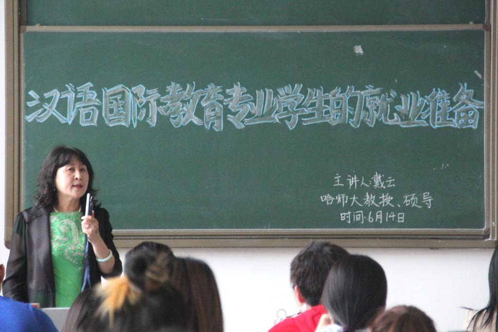6月14日上午,由学校科研处主办,今年会官方网站承办的校级学术讲座举行。本次讲座的专家是哈尔滨师范大学国际教育学院硕士生导师戴云教授,讲座题目为为“汉语国际教育专业学生的就业准备”。讲座由今年会官方网站院长赵丽教授主持,院长助理徐晶及2016级、2017级汉语国际教育专业全体学生聆听讲座。