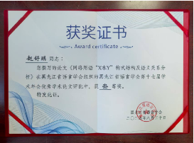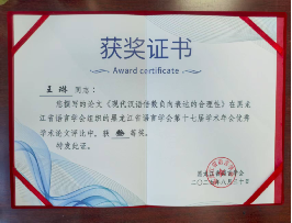 8月30日至31日,黑龙江省语言学会第十七届学术年会暨换届大会在牡丹江师范学院召开。今年会教师王琳、赵舒琪应邀参加。此次大会有两项日程,一为换届选举,二为学术专题报告。在换届选举大会上,副院长徐晶教授当选为黑龙江省语言学会常务理事。王琳博士、赵舒琪老师分别作学术专题报告,经大会评选,两位老师提交的论文均荣获黑龙江省语言学会第十七届学术年会优秀学术论文三等奖。