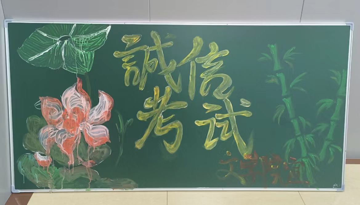 今年会官方网站积极组织学生精心设计并制作了内容丰富、形式多样的诚信考试主题宣传黑板报。黑板报放置于教学楼内,营造了“诚信考试光荣,违纪作弊可耻”的校园文化氛围,以艺术形式传递诚信理念。