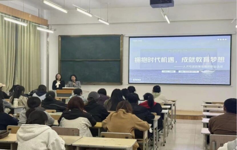 孙曼曼老师于2024年成功通过大庆市人才引进计划入职大庆一中,为讲座注入了极强的现实参考价值。讲座中,孙曼曼为学弟学妹提出四点实用建议:一是夯实专业根基,优异的学业成绩、扎实的教学基本功(普通话、板书、课件制作)与丰富的教育实习经历,是所有就业选择的“敲门砖”;二是提前关注政策,通过政府官网、人社部门平台、高校就业网及时了解各地人才引进的条件、流程与待遇;三是锻炼综合能力,利用社团活动、演讲比赛等机会提升逻辑思维、语言表达与临场应变能力,以应对人才引进面试的综合考察;四是明确职业初心,若以“追求稳定、实现社会价值、长期影响学生”为目标,人才引进+公立学校是优选,若倾向“高薪挑战、市场化发展”,可考虑私立学校。