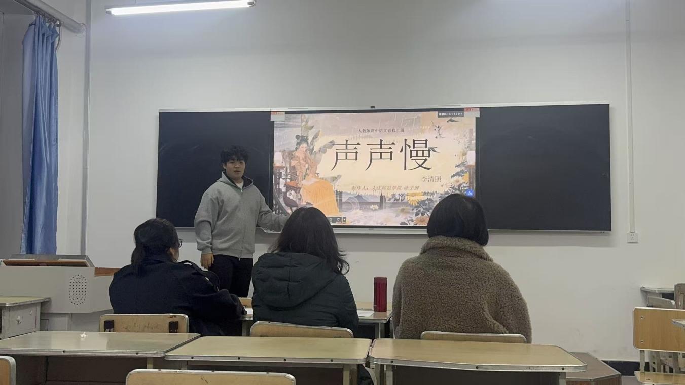 比赛现场,选手围绕教学课件展开8分钟现场展示,运用PPT动画、AI辅助等技术,呈现出兼具教学性与创新性的作品。赵舒淇、张立丹和刘月彤三位评委老师从“教学目标契合度”“技术应用恰当性”“展示表达清晰度”三个核心维度对选手表现进行现场点评,既肯定参赛作品的亮点,也针对课件逻辑优化、技术细节完善等方面提出改进建议,让比赛成为“以赛促学、以评促改”的实践课。