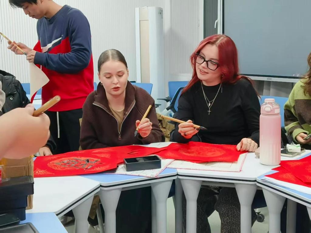 除了精神传承,系列活动还聚焦中国传统节日文化,策划两期民俗体验专场。留学生们亲手参与包饺子、书写福字、竞猜灯谜等传统民俗活动,在包饺子中感受团圆的寓意,在笔墨挥洒间体悟汉字的韵味,在灯谜竞猜中领略中华传统文化的智慧。这些充满生活气息的活动,不仅让留学生亲身感受中国节日的独特魅力,更帮助他们领悟到:龙江精神与传统节日文化一脉相承,都承载着中华民族自强不息、团结奋进的精神基因。