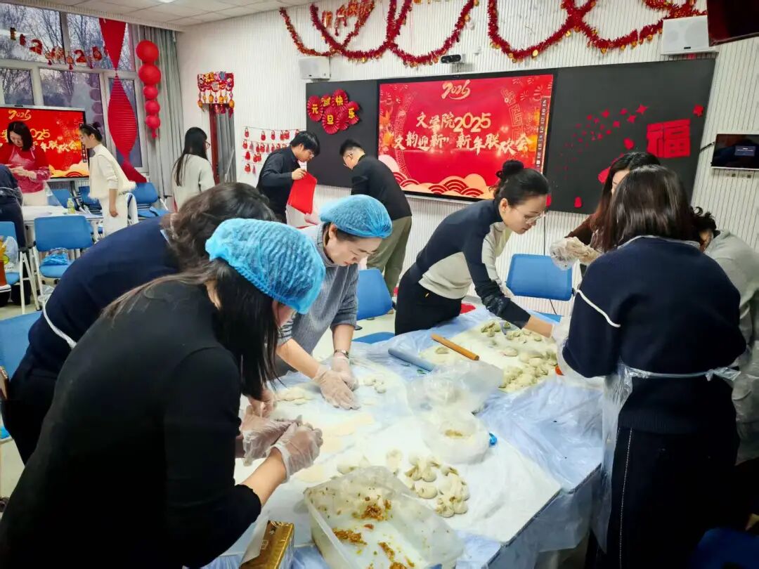活动最后,全体教师携手开展“团圆包饺子”。揉面、擀皮、包馅、下锅,大家分工协作、其乐融融。热气腾腾的饺子暖胃更暖心,象征团圆与丰收,为活动画上温馨句号。