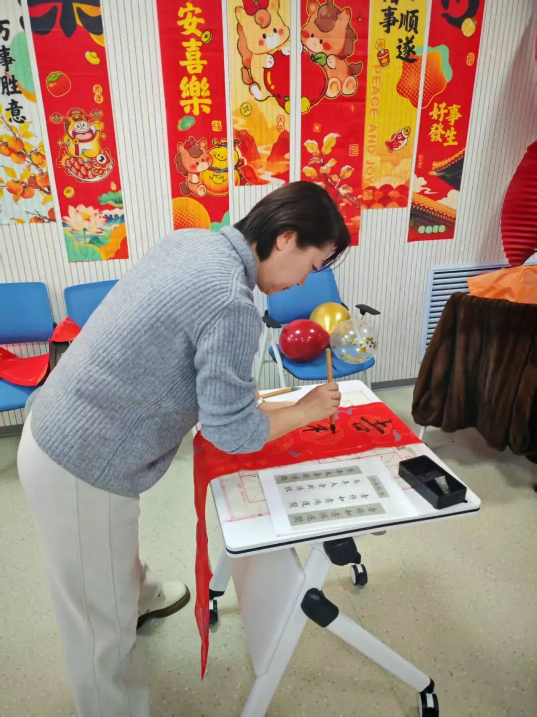 在“书法迎春”环节,各组教师挥毫泼墨,共同创作春联与“福”字。一副副春联或雄健洒脱,或清雅秀逸,既寄托新年祝愿,也体现学院厚德载物、求真务实的精神。红纸墨香间,文化传承与时代气息交相辉映。