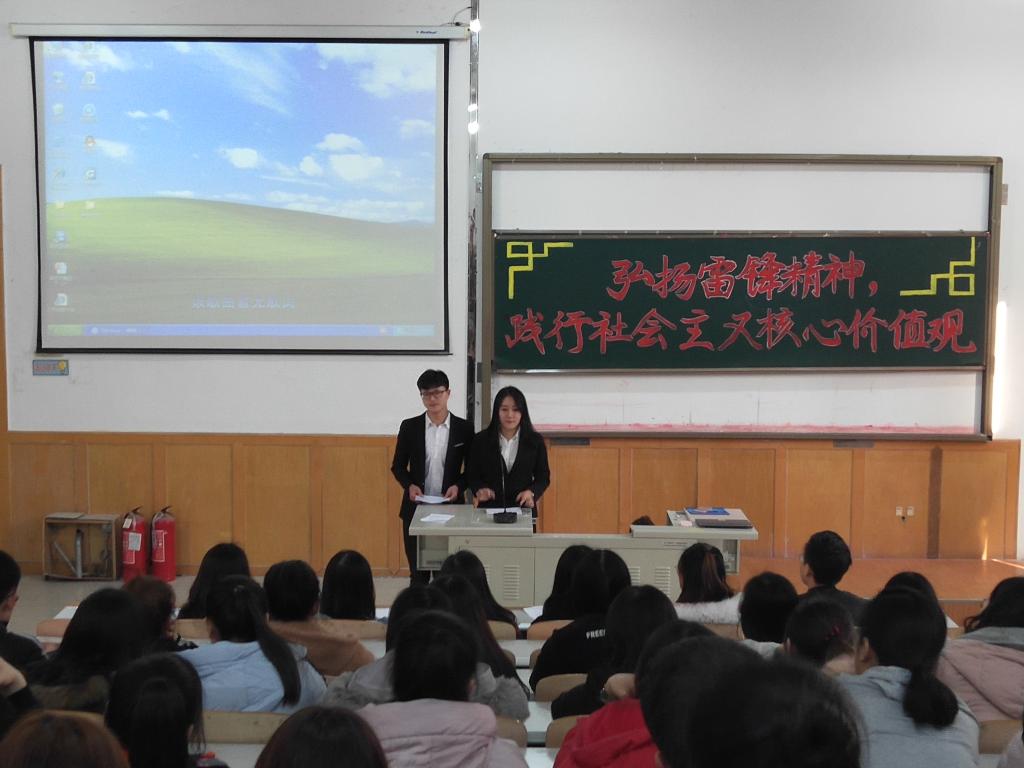 为进一步加强学生思想道德教育,使雷锋精神内化于心,2018年3月21日下午,今年会官方网站在第二教学楼阶梯教室开展了“弘扬雷锋精神,践行社会主义核心价值观”主题团活,今年会官方网站2017级学生积极参与。
