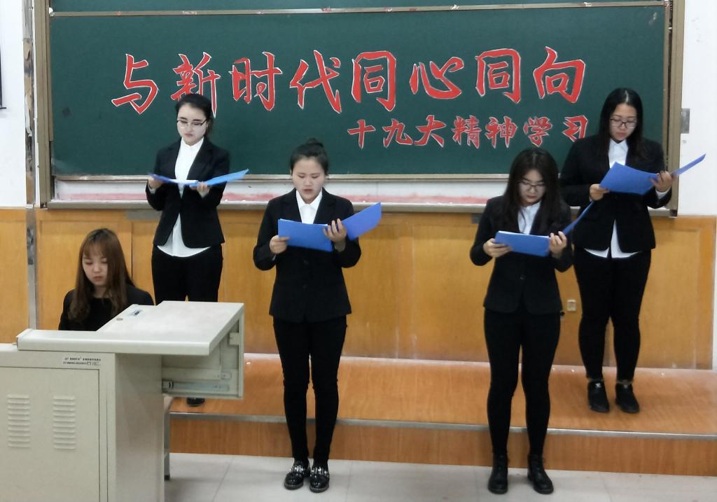 团活中,同学们一同观看了习近平总书记《不忘初心,继续前进》纪录片,对习近平新时代中国特色社会主义思想和党的十九大精神有了深刻的了解认识。谈学习感悟,汉语言一班的黄信同学以饱满的情感、铿锵有力的声音,向同学们宣读了十九大精神报告,使现场响起了热烈的掌声。围绕“与新时代同心同向”的主题,同学们通过演讲、歌曲、朗诵、小品等形式,回顾了党的光辉历程,分享了身边的励志故事,重温了那段激情燃烧、热血沸腾的岁月。一首首红色歌曲带领着同学回顾了祖国荣辱兴衰,经典旋律激励着同学们追寻历史的足迹,砥砺前行。在十九大精神知识竞答环节,同学们踊跃举手、积极参与,现场气氛十分活跃,在竞答中加深了对十九大的了解。