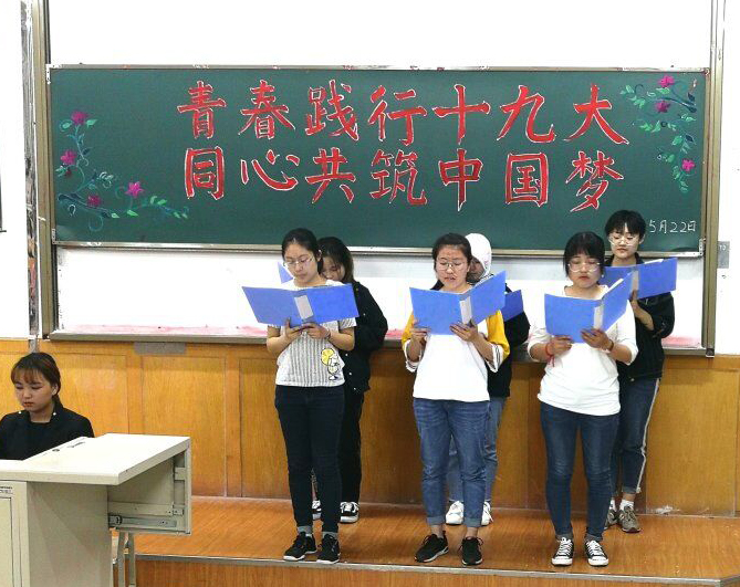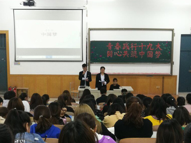 为切实做好党的十九大精神学习宣传贯彻实践工作,教育引导同学们坚定理想信念。2018年5月22日晚,今年会官方网站于第二教学楼阶梯教室开展了“青春践行十九大,同心共筑中国梦”主题团活,2017级全体学生积极参与。