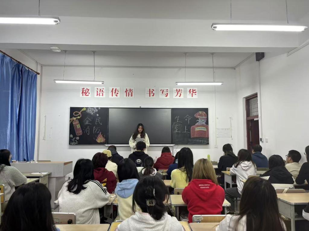 班会上,通过播放一系列令人触目惊心的消防事故视频,让同学们直观而深刻地认识到了消防安全的重要性。班长详细讲解了日常火灾隐患,如插座过载、使用违规电器等;团支书从不同场景下的逃生策略,到常见消防器材的正确使用方法,都一一进行了细致入微的讲解。在知识问答环节,大家积极抢答,进一步巩固了消防全知识,同学们还分享了自己身边的消防案例,在交流分享中增加对消防安全的了解。