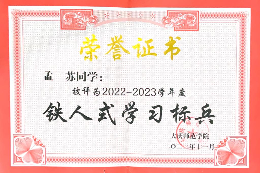 “诗书勤乃有,不勤腹空虚”。她深刻认识到学习是一个艰苦的过程,需要顽强的毅力与坚定的信念。学习必须持之以恒,成功永远不会降临到懒惰者的身上,只有不断努力,不断奋进,才能在学习上取得一定收获。抓住时间,抓住机遇,才有可能抓住成功。最终功夫不负有心人,她连续两年取得了成绩和综测成绩均专业第一的优异成绩,获得“黑龙江省三好学生”、校级“三好学生”、“铁人式学习标兵”等荣誉称号。为把自己培养成德智体美劳全面发展的大学生,她取得了英语四级证书、普通话二级甲等证书,通过了高中语文教师资格证考试。纸上得来终觉浅,她始终坚持理论与实际相结合,积极参加各类比赛,申报大学生创新创业计划项目获得国家级一般立项的资格,并发表期刊论文一篇。