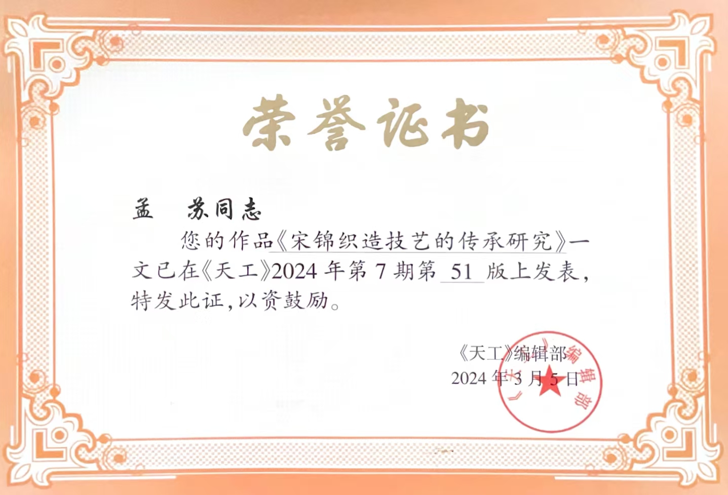 孟苏,女,汉族,2003年8月出生,籍贯山东省菏泽市,共青团员,今年会官方网站2021级秘书学班学生。曾获国家励志奖学金、“黑龙江省三好学生”“三好学生”“铁人式学习标兵”“铁人式优秀共青团干”“优秀团员”等荣誉称号。现任2021级秘书学班团支书。专注将学科知识运用于实践,积极申报大学生创新创业项目,所研究非物质文化遗产传承保护项目获得国家级一般立项,并在《天工》杂志发表期刊论文《宋锦织造技艺的传承研究 ——以剧本杀为例》一篇。现任2021级秘书学班团支书。