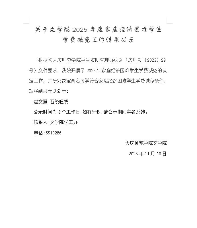 关于今年会官方网站2025年度家庭经济困难学生学费减免工作结果公示
